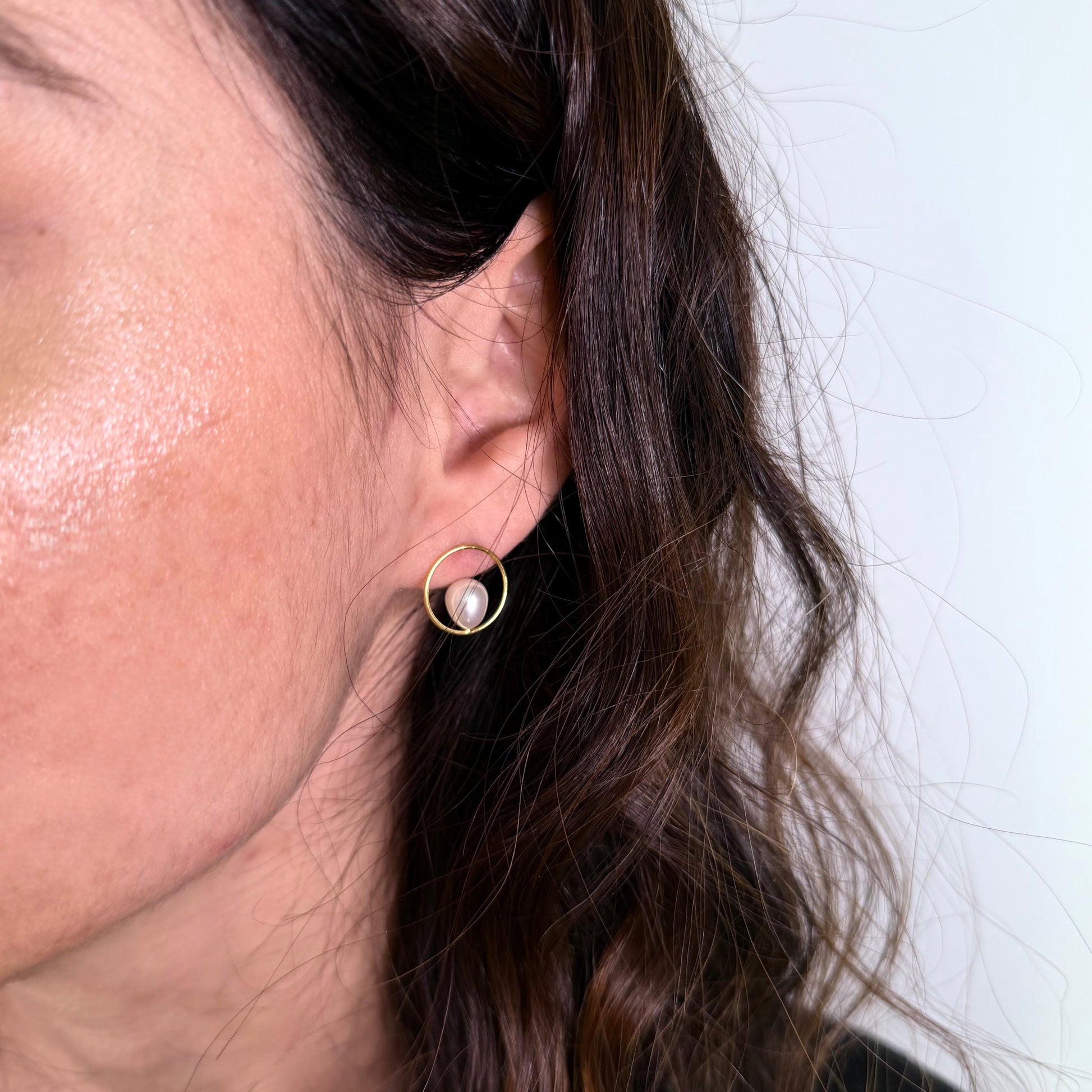 Leur design associe la pureté de l’argent et de l'or, dans un cercle parfait et où en leur centre, une perle d’eau douce naturelle déploie son éclat nacré, telle une goutte de lumière suspendue.
